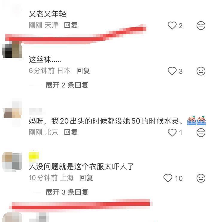 有网友说"蝴蝶结单独看挺好看的,但放她身上就是怪,跟cos自己年轻时候似的"也有网友说"这身要是换个二十来岁的小花穿,估计效果完全不一样,主要是气质不搭"